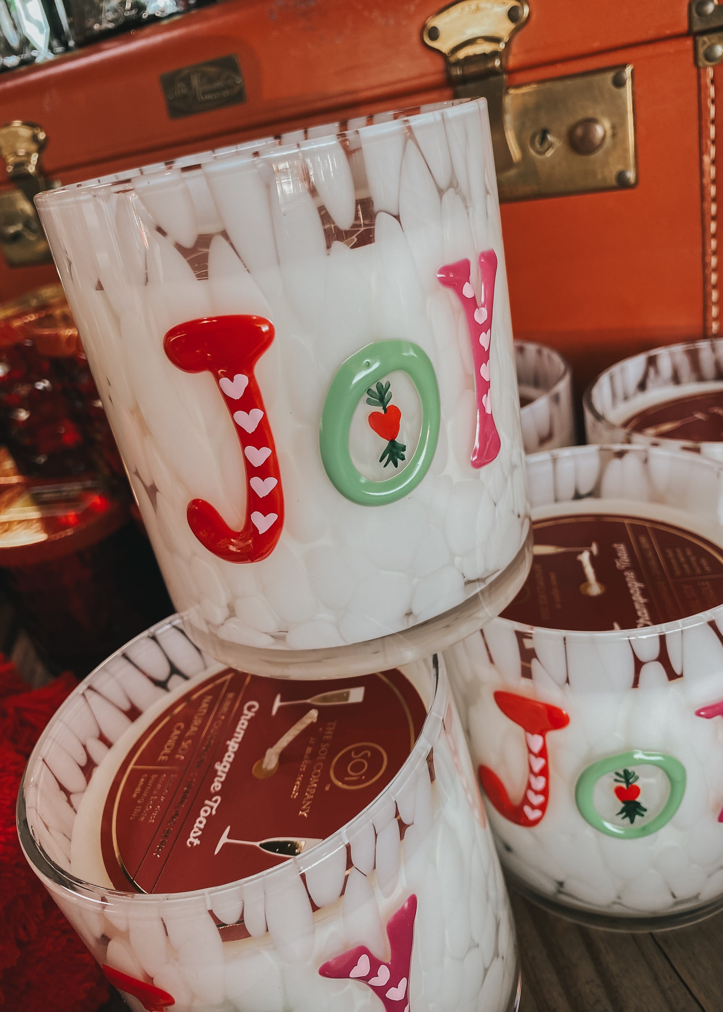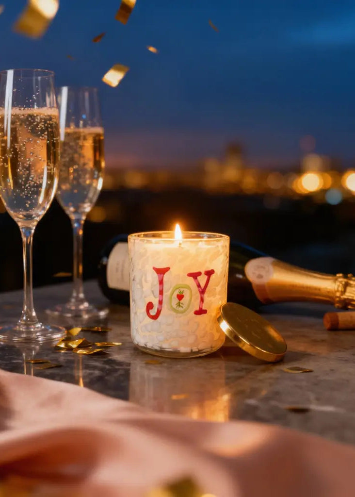 Joy 12oz Confetti Icon Candle - Champagne Toast fragrance notes: Bubbly Champagne & Sparkling Berry. Champagne Toast” feels like the sparkle before a celebration—the scent equivalent of clinking glasses under fairy lights. That blend of effervescent champagne and juicy, sparkling berry gives a lively, sophisticated twist to the season. It's sweet with a pop, like laughter echoing through a festive gathering. This one would make a fabulous New Year’s Eve candle or a “cheers to you” gift year-round. These adorable whimsical candles are the perfect gift for the holiday. All of our candles are Vegan, cruelty free and can be repurpose for keepsakes or whatever you choose.