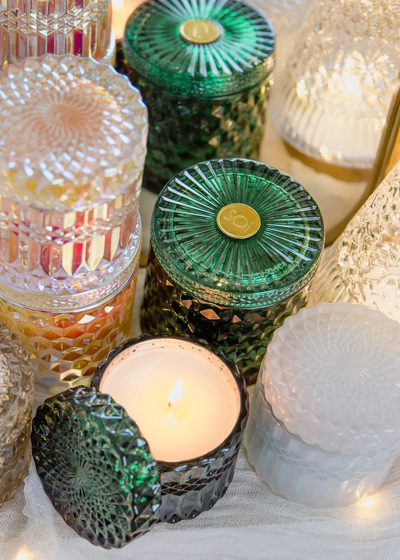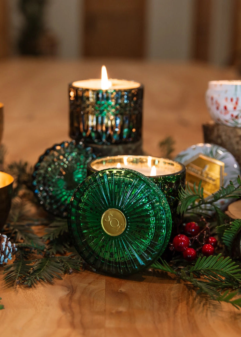 A beautiful blend of snow covered Fraser fir and balsam cedar with a touch of frosted juniper berry. 8oz Petite Shimmer Approx. 40 hour Burn time Perfect for the holidays or all year round. All of our candles are poured by hand, Vegan, cruelty free and can be Repurpose for keepsakes or whatever you choose.