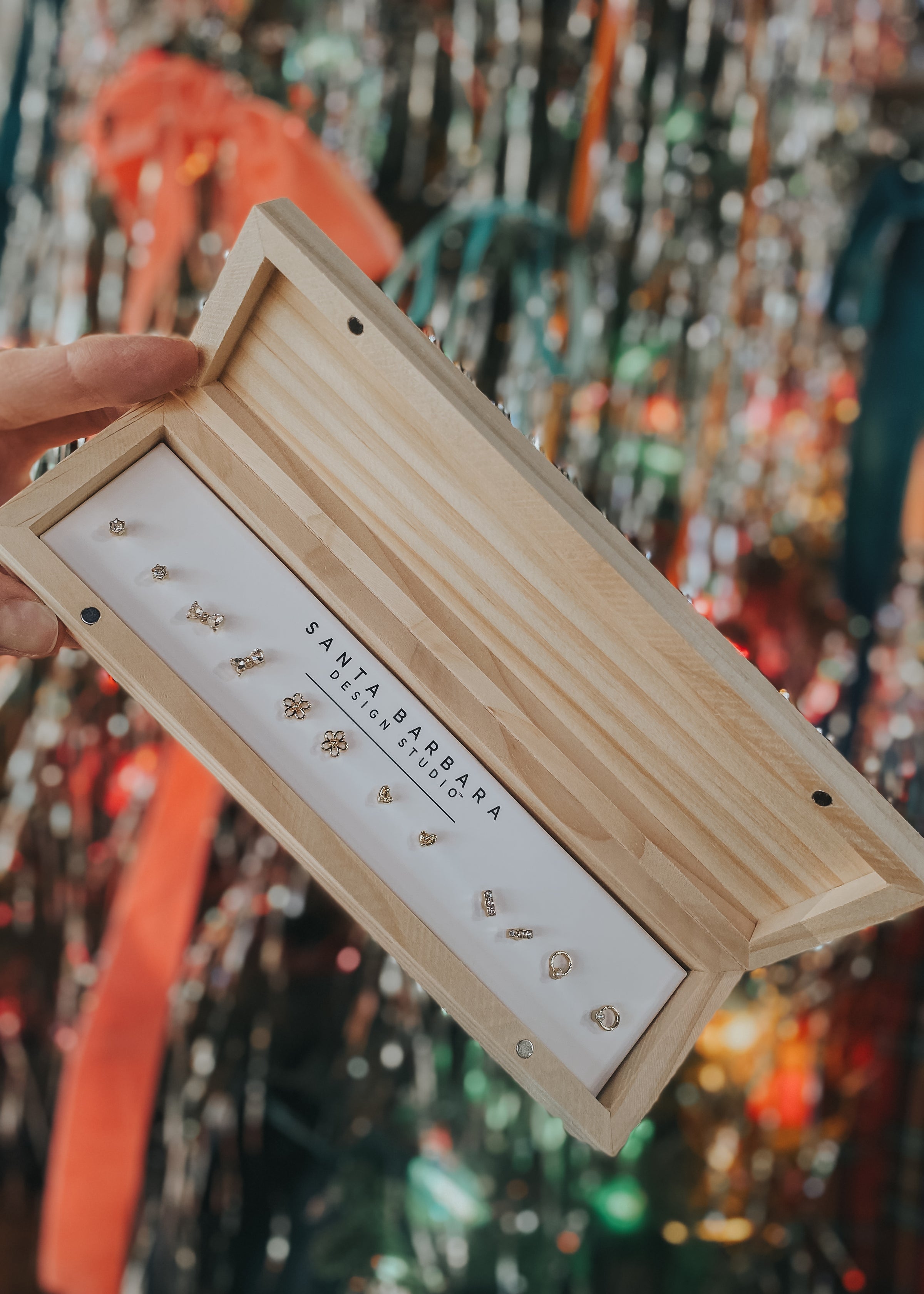 Unbox elegance with our decorative wooden Boxed Earring Set, featuring 5-6 stunning pairs of earrings beautifully arranged inside a handcrafted keepsake box. From dainty studs to statement drops, each pair is thoughtfully designed to suit every mood and moment. Housed in a rustic-chic wooden box with charming details, this set is both a jewelry collection and a gift in itself.
