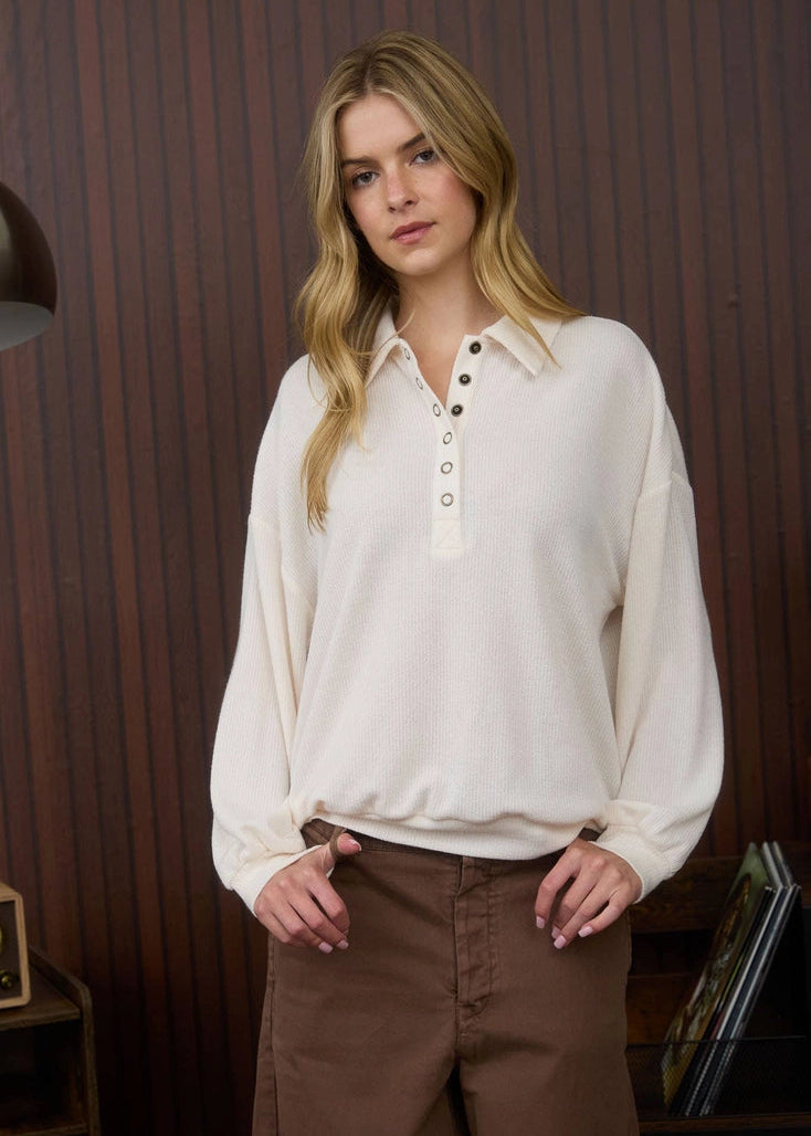 Slip into effortless style with this laid-back knit top featuring a half snap button Henley neckline that's perfect for mixing and matching. Long sleeves with a relaxed drop shoulder silhouette create that coveted slouchy vibe, while the solid knit fabric keeps things timeless and versatile. Unlined and wonderfully comfortable, this piece is your new go-to for casual days when you want to look put-together without trying too hard.