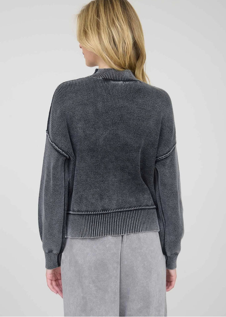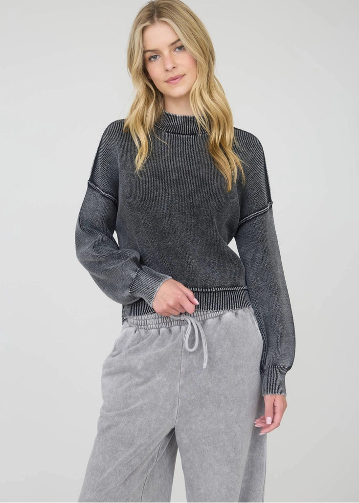 Rock a relaxed, no-fuss look with this charming knit pullover sweater. Featuring a mock neckline, oversized drop shoulders, and full-length sleeves, it's your go-to piece for staying cozy and cool. The trendy acid-washed finish gives each sweater its own personality—no two are exactly alike. Whether you're lounging or running errands, this pullover delivers comfort and style without the drama.