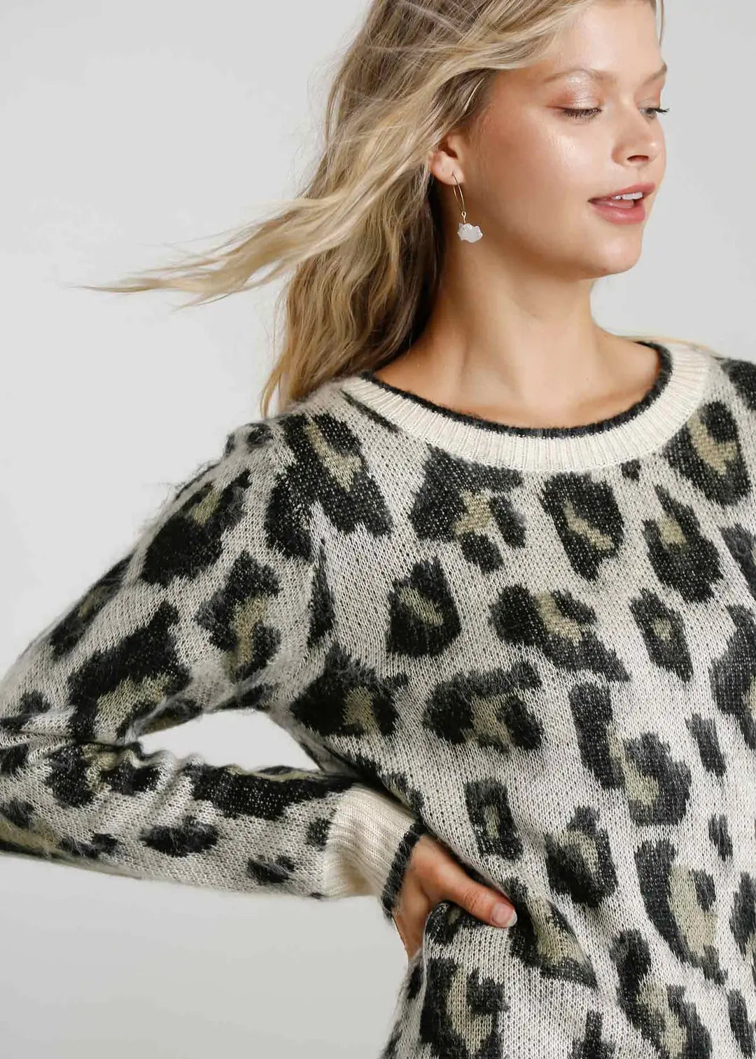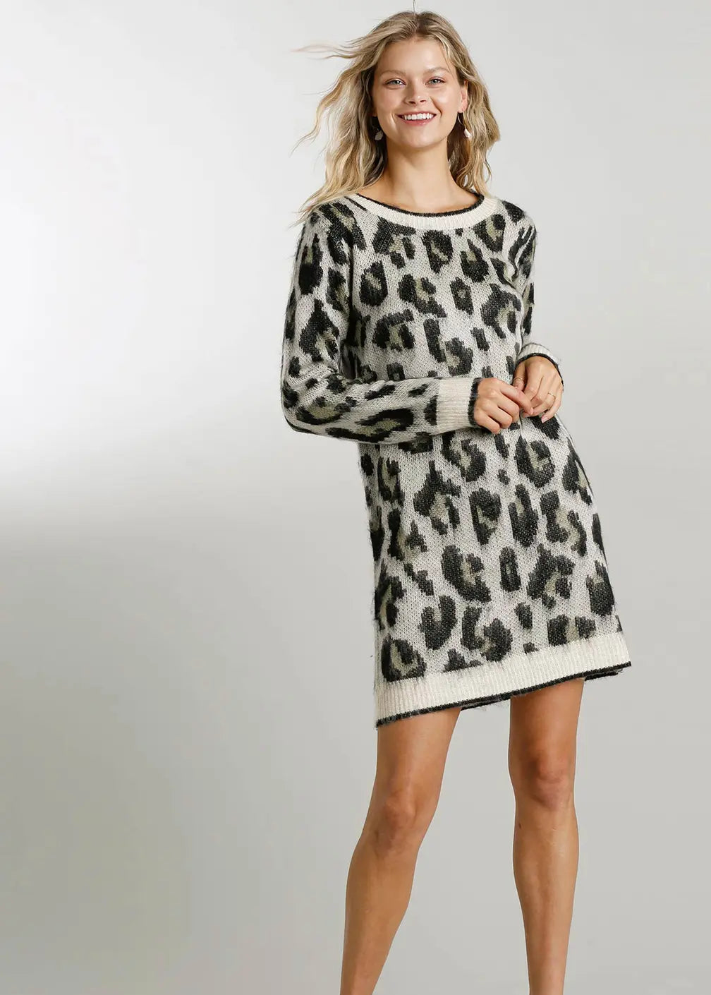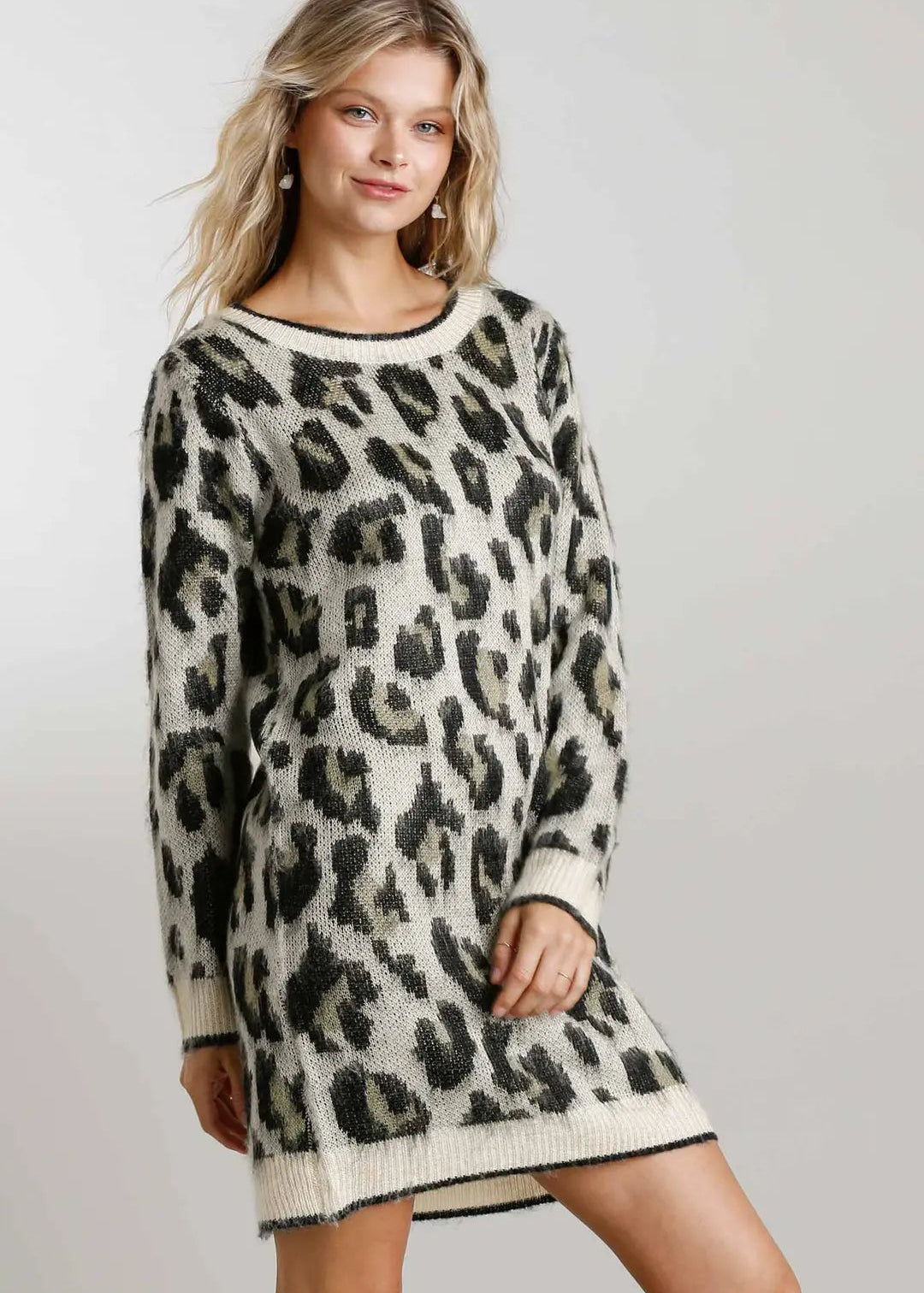Animal Print Round Neck and Long Sleeve Dress Sweater