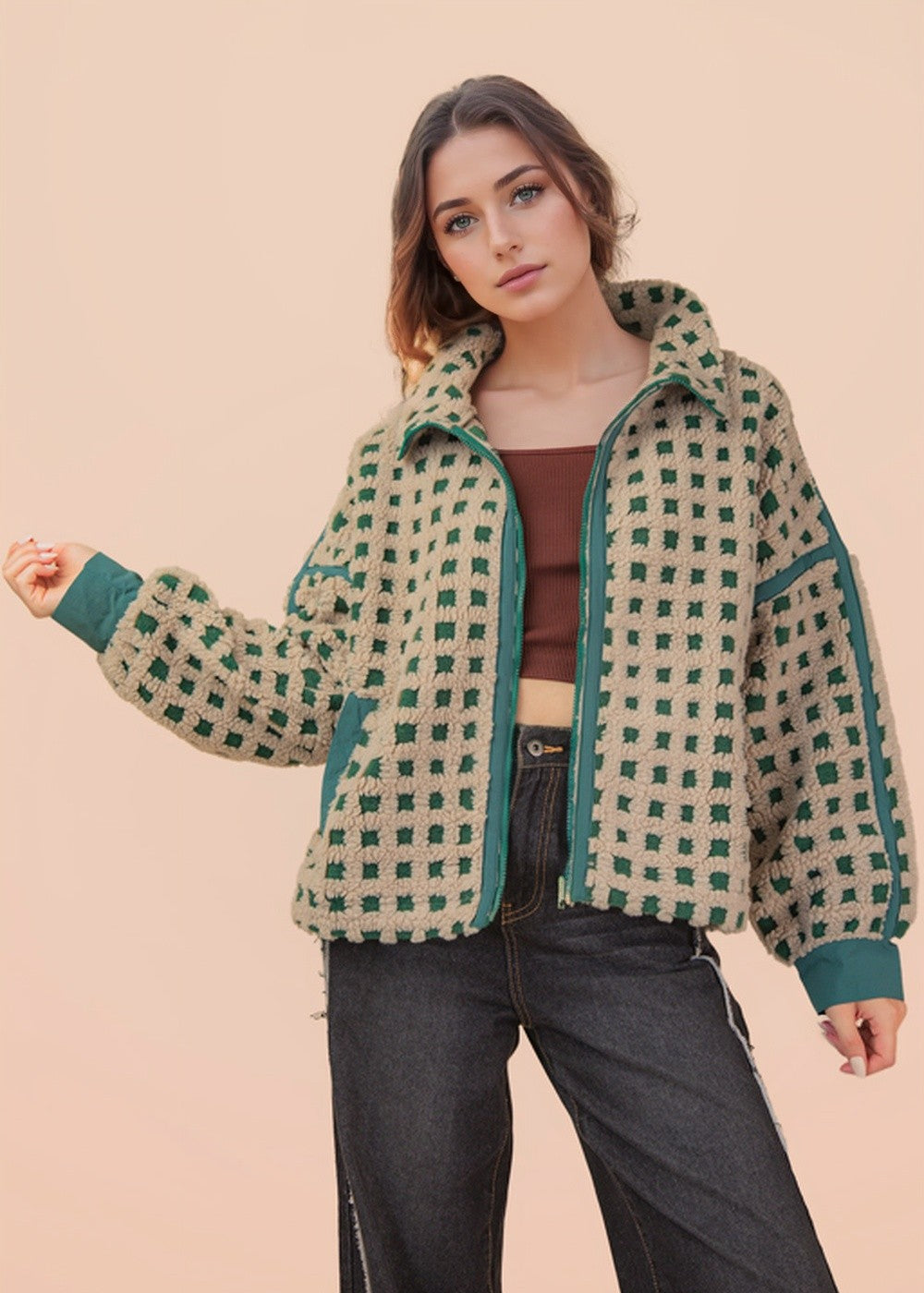 Oversized Checker Fleece Jacket