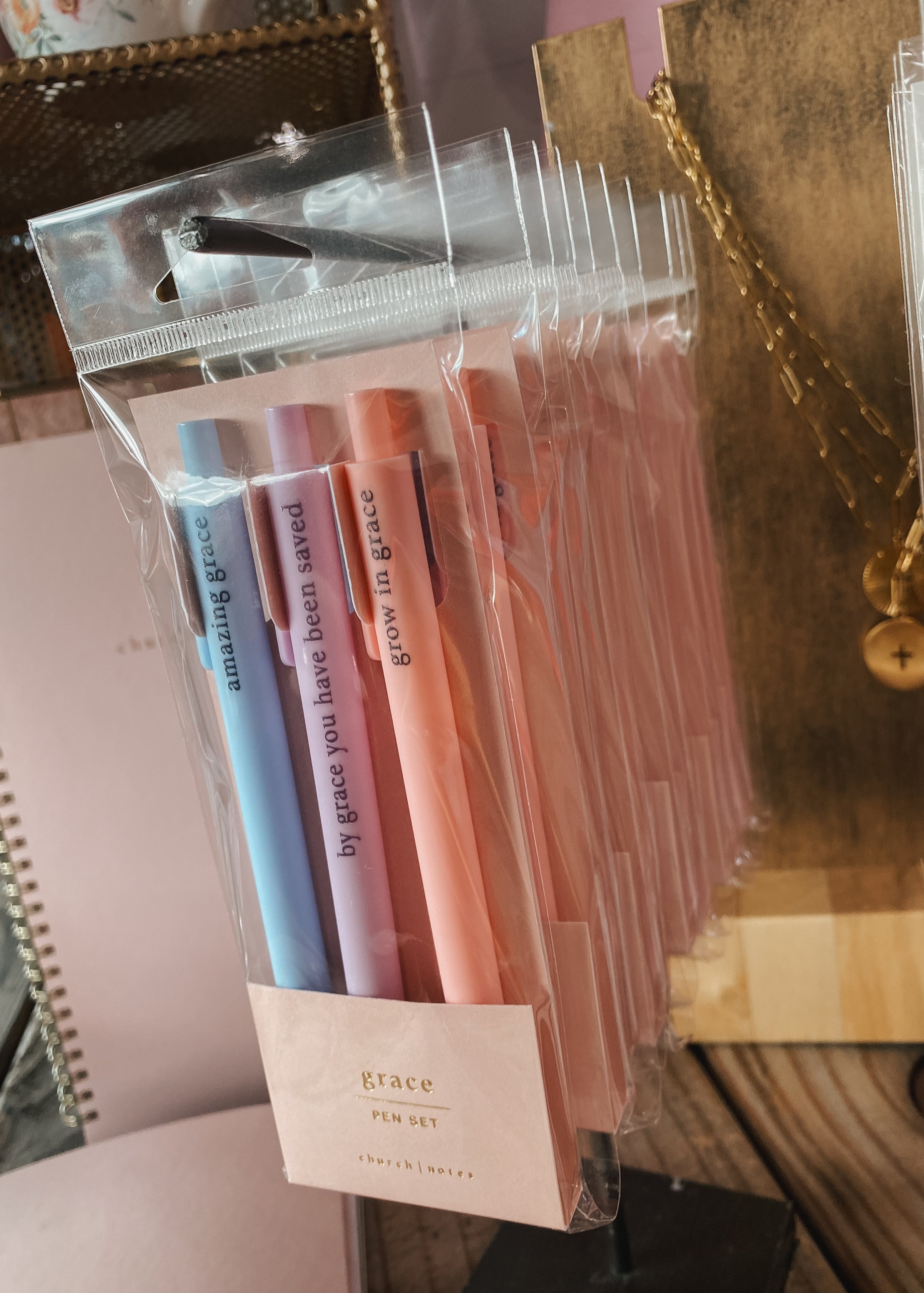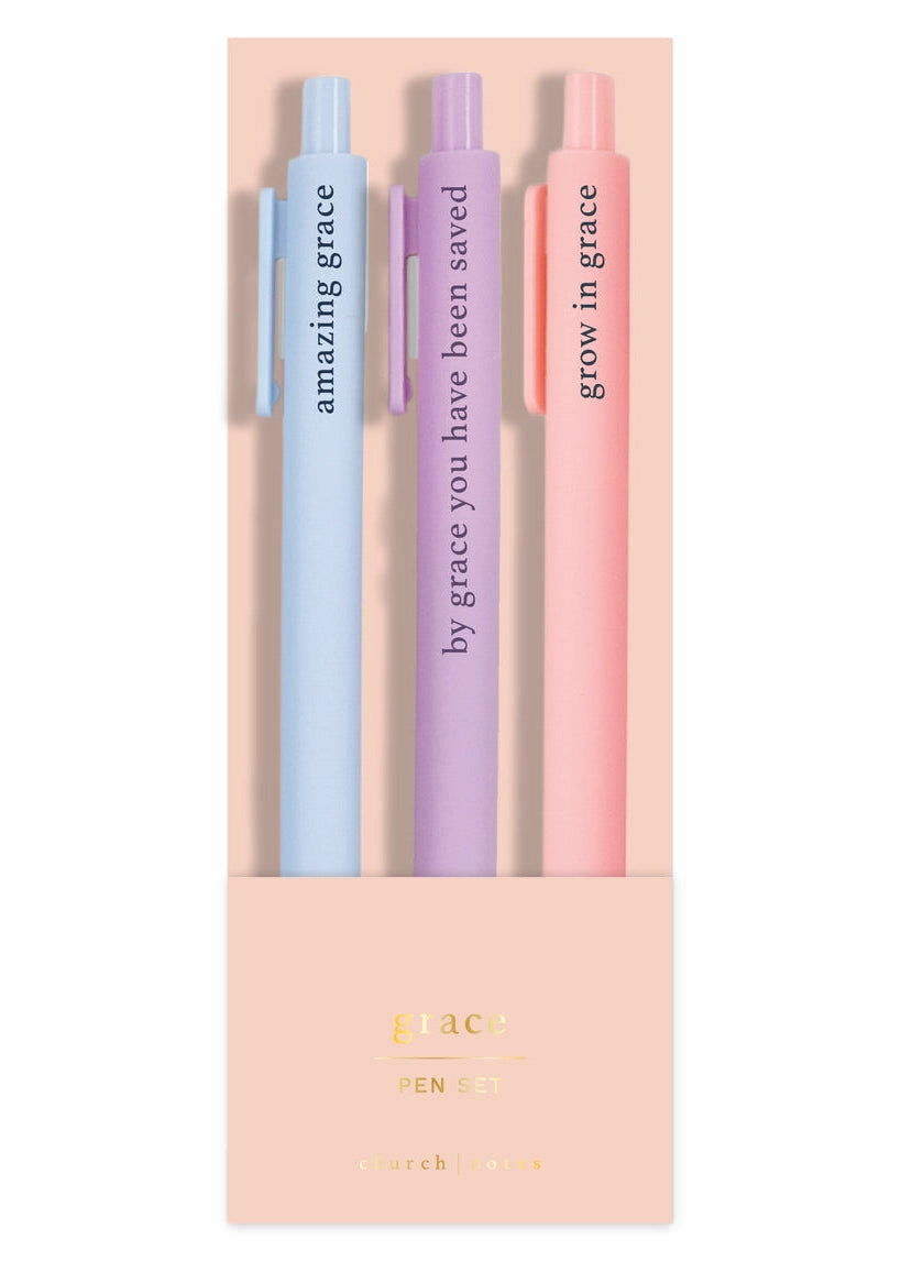 Let truth flow from pen to page with the Grace Bible Study Pen Set. This soft-toned trio features gentle reminders of His mercy—“amazing grace,” “by grace you have been saved,” and “grow in grace.” Whether journaling through Scripture or writing words of encouragement, these pens are a sweet reflection of His love. A beautiful gift for friends, daughters, or mentors walking in grace and truth. Features: 3 click-style gel ink pens Ink colors: Light Blue, Purple, Pink Packaging: Peggable polybag; 6×2.25×0.4" Design: Amazing Grace, By Grace You Have Been Saved, Grow In Grace