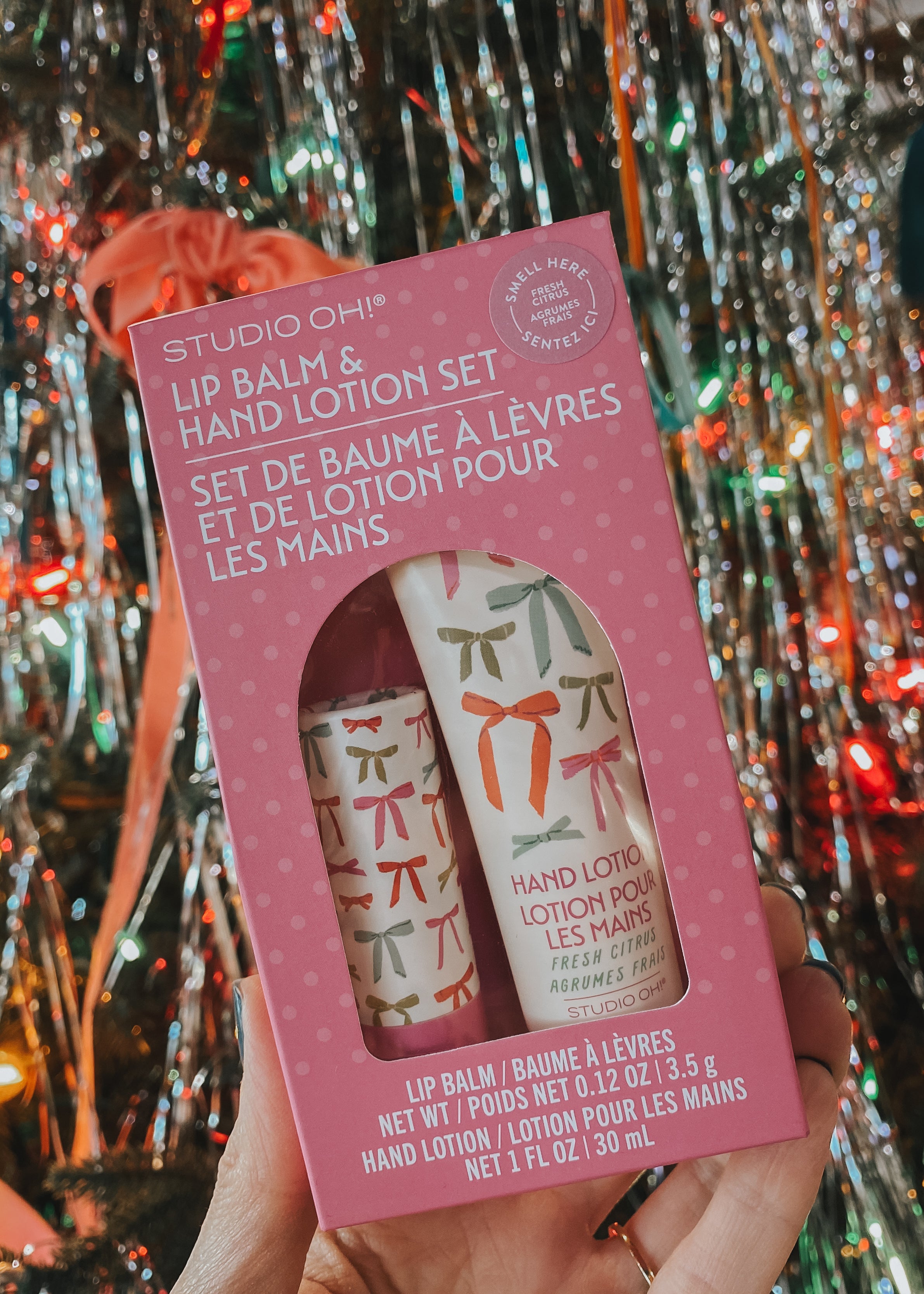 The Lip Balm & Hand Lotion Set from Studio Oh! includes a 1 oz hand cream and lip balm packaged in a clear, reusable pouch. The unscented lip balm helps gently moisturize and smooth dry lips, while the scented hand lotion hydrates hands and cuticles. The two-piece set is artfully designed and perfect for carrying in a handbag or gifting to a friend.
