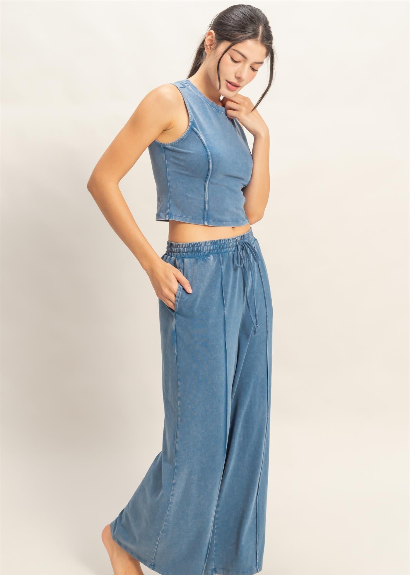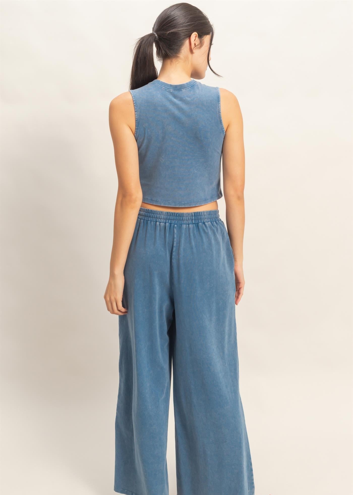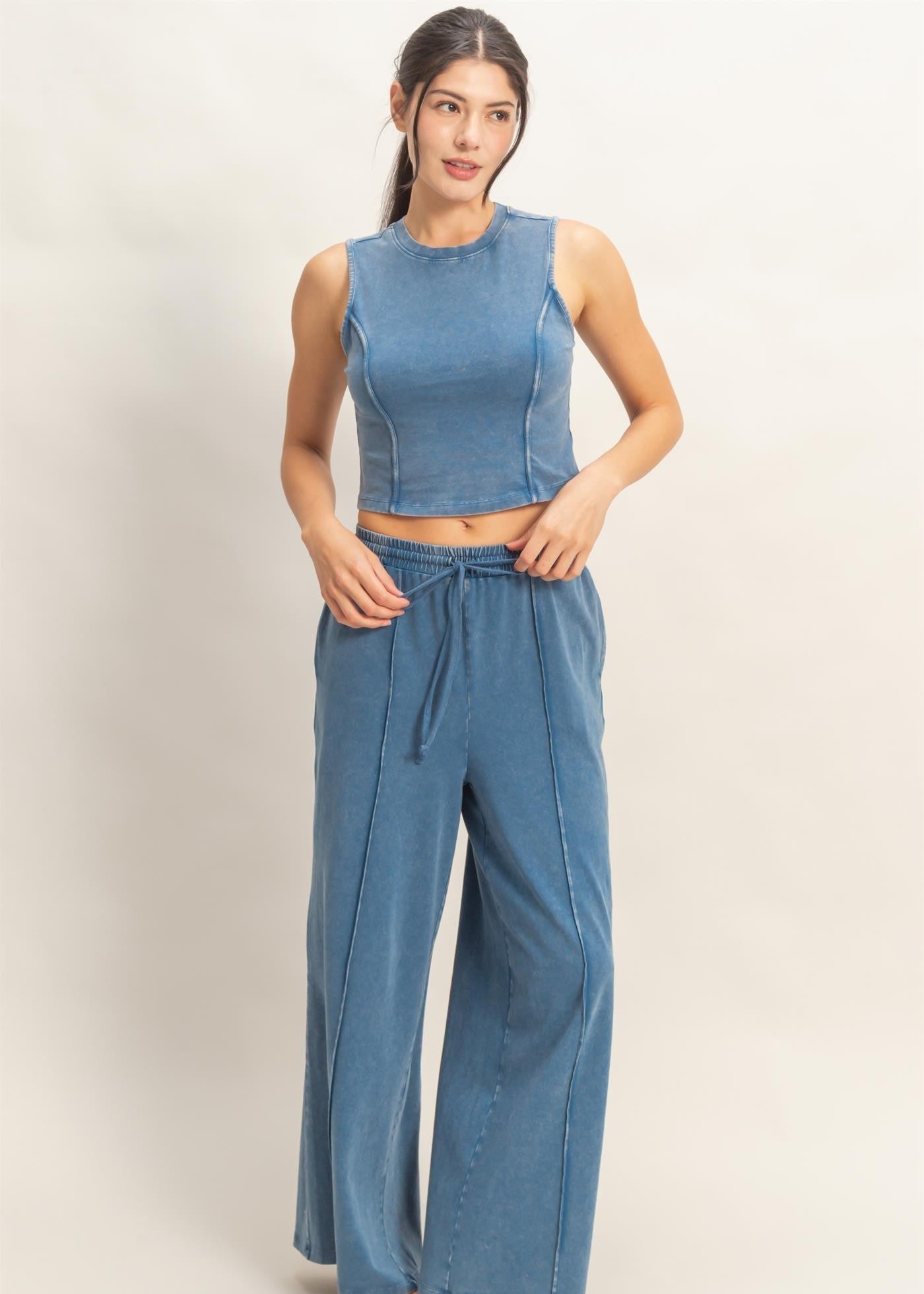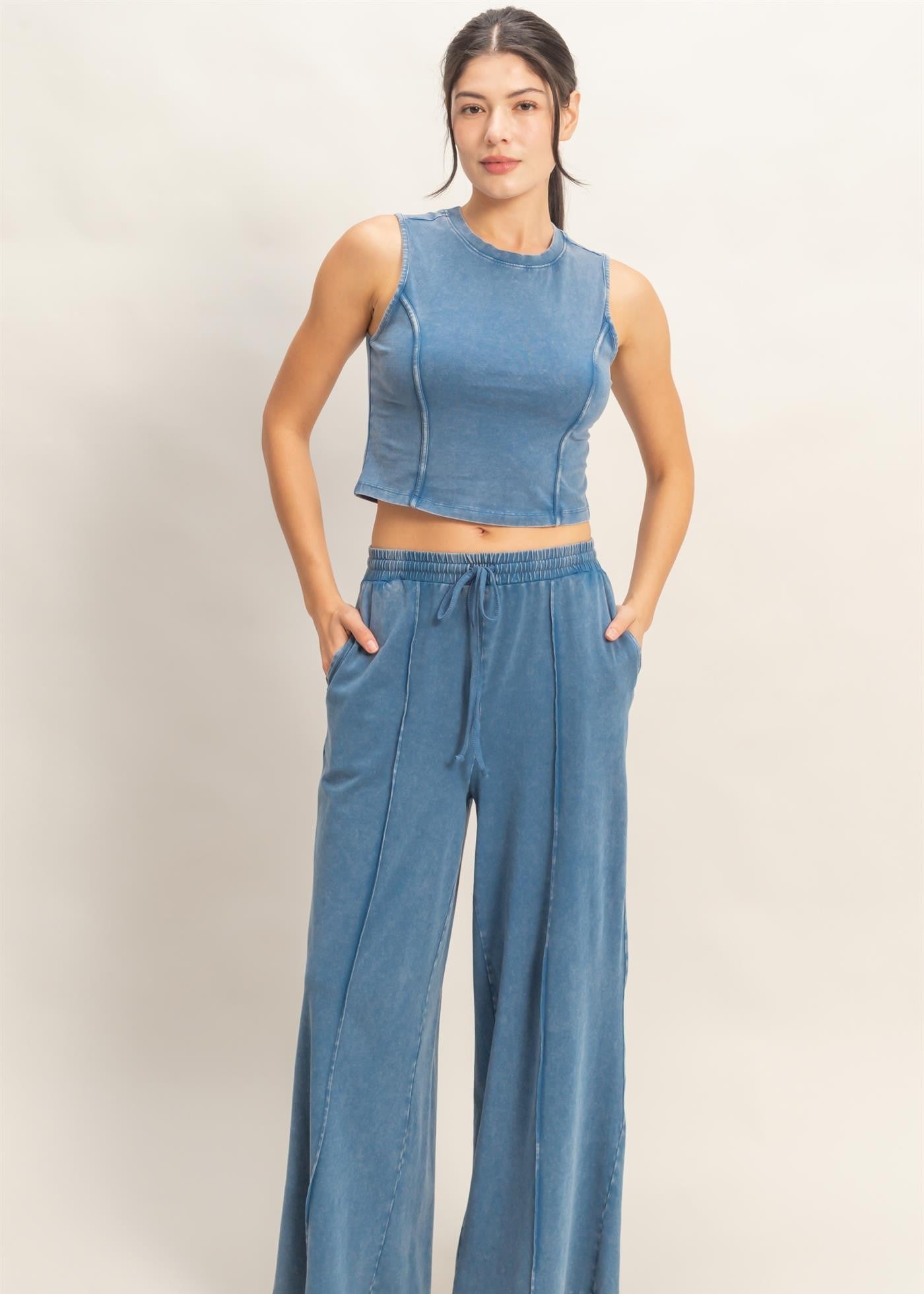 Effortlessly chic and versatile, this mineral washed sleeveless top brings a relaxed, lived-in aesthetic to any wardrobe. The cropped silhouette pairs perfectly with high-waisted bottoms, while the classic ribbed crew neckline offers timeless appeal. Princess lines create a flattering, structured fit that skims the body beautifully. Perfect for layering or wearing solo, this piece transitions seamlessly from casual days to evening outings.