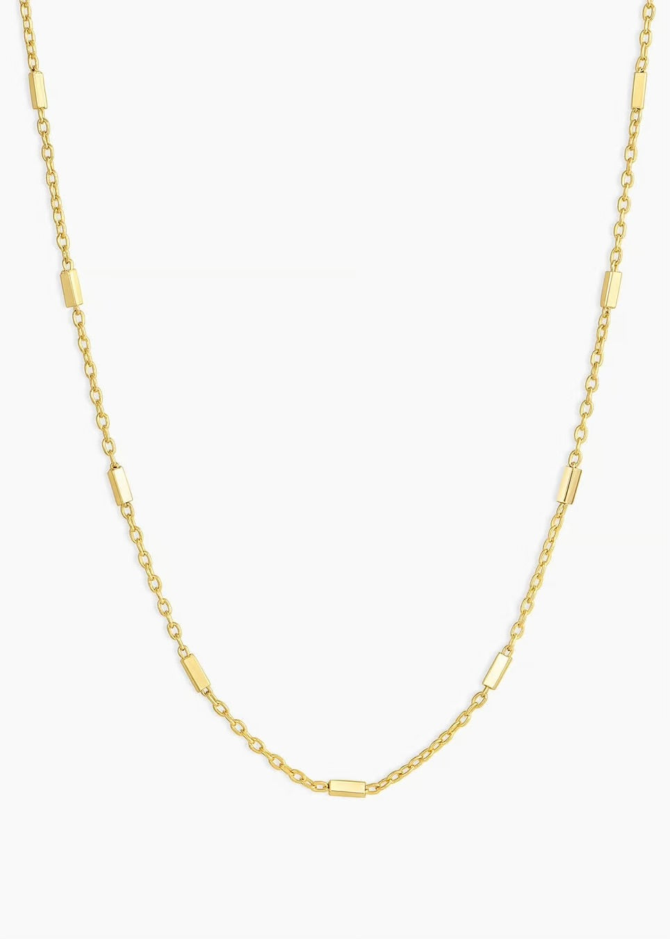 Featuring a minimalist design, this dainty gold plated necklace is the perfect addition to your stack. We love wearing this necklace both on its own or layered with other gold necklaces for a fully stacked look.