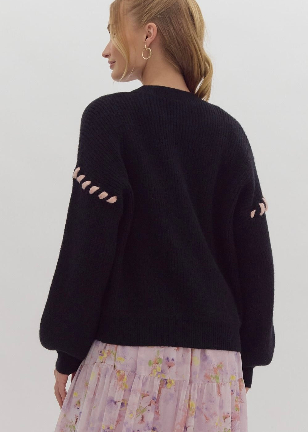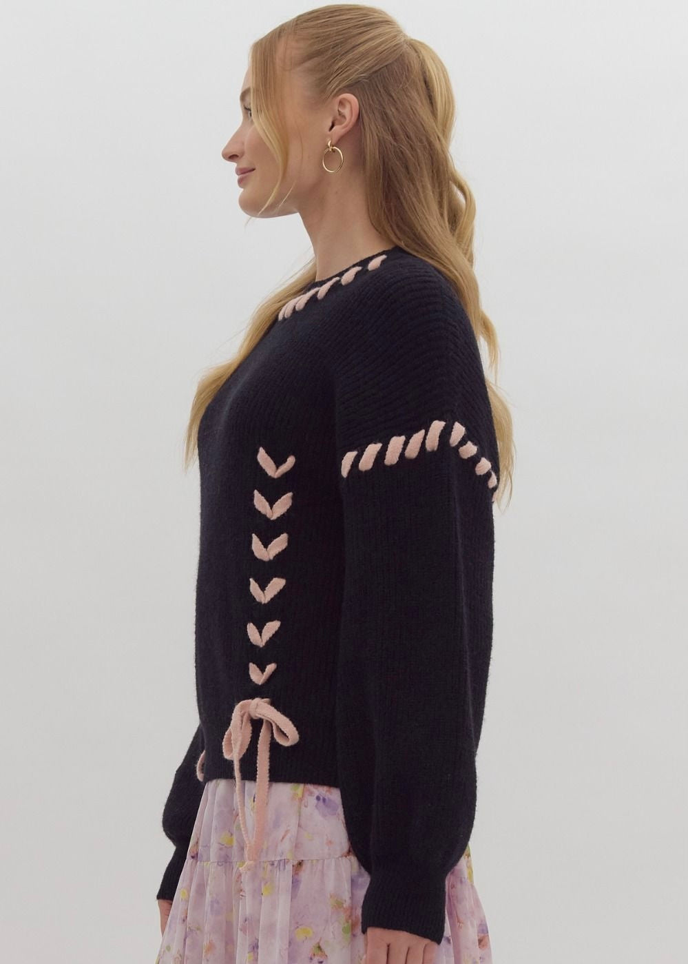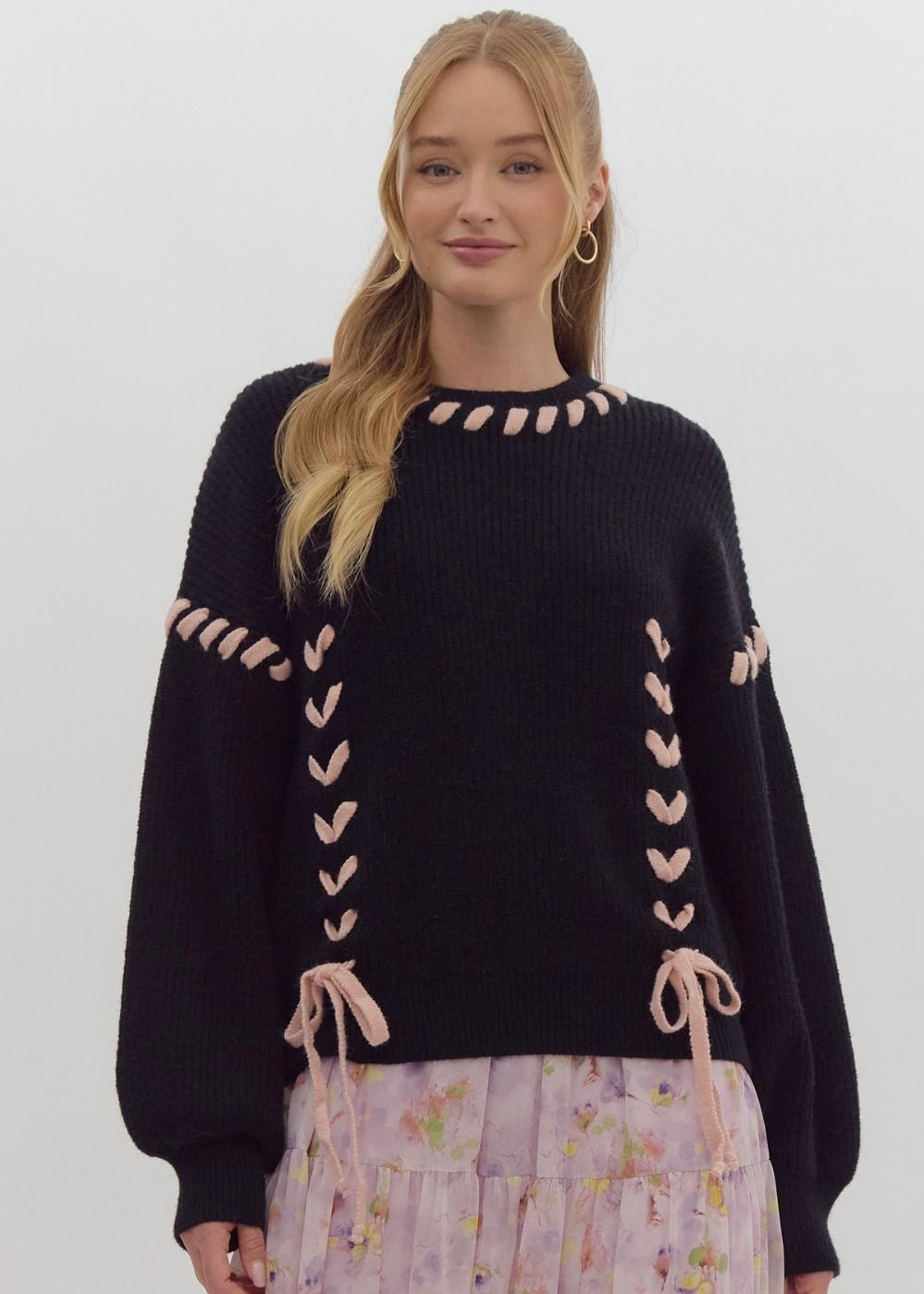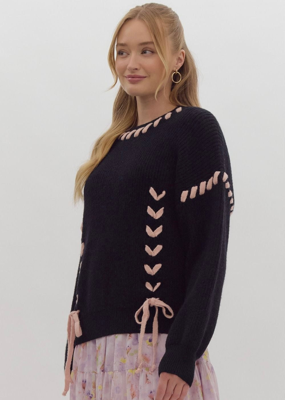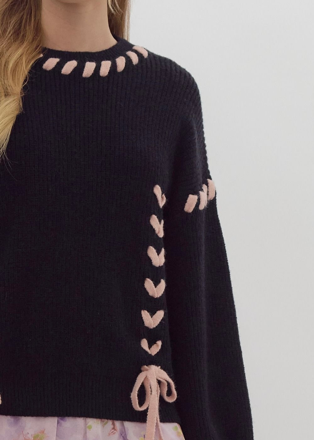 Cozy up in this charming round-neck knit sweater with long sleeves and a playful twist—delicate lace accents add just the right amount of flair. Crafted from lightweight knit fabric that's perfectly opaque, this unlined piece is your go-to for effortless style that feels as good as it looks.